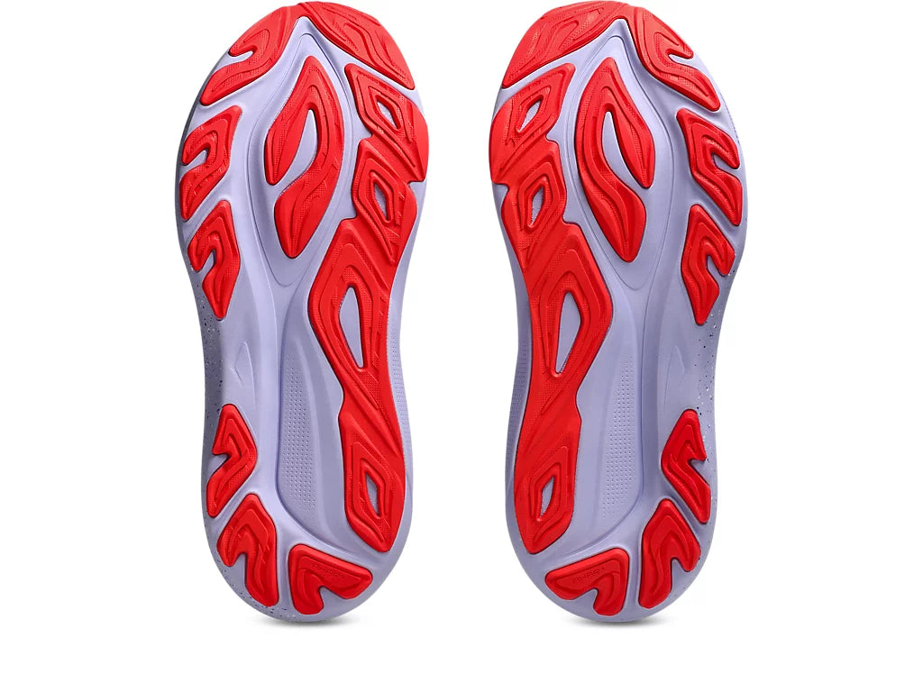A trampoline outsole pod is positioned in the center of the outsole. This helps produce a more responsive toe-off.