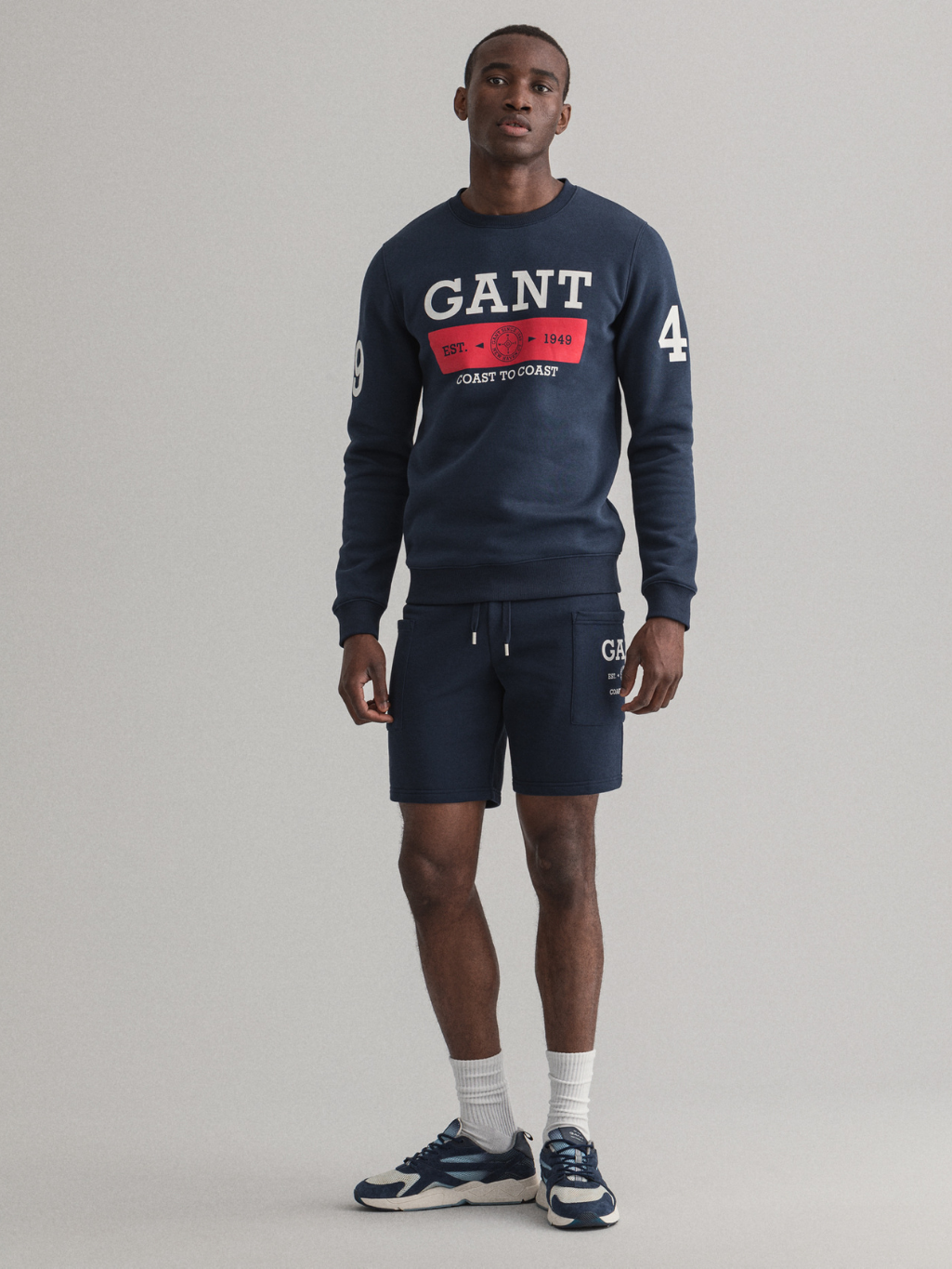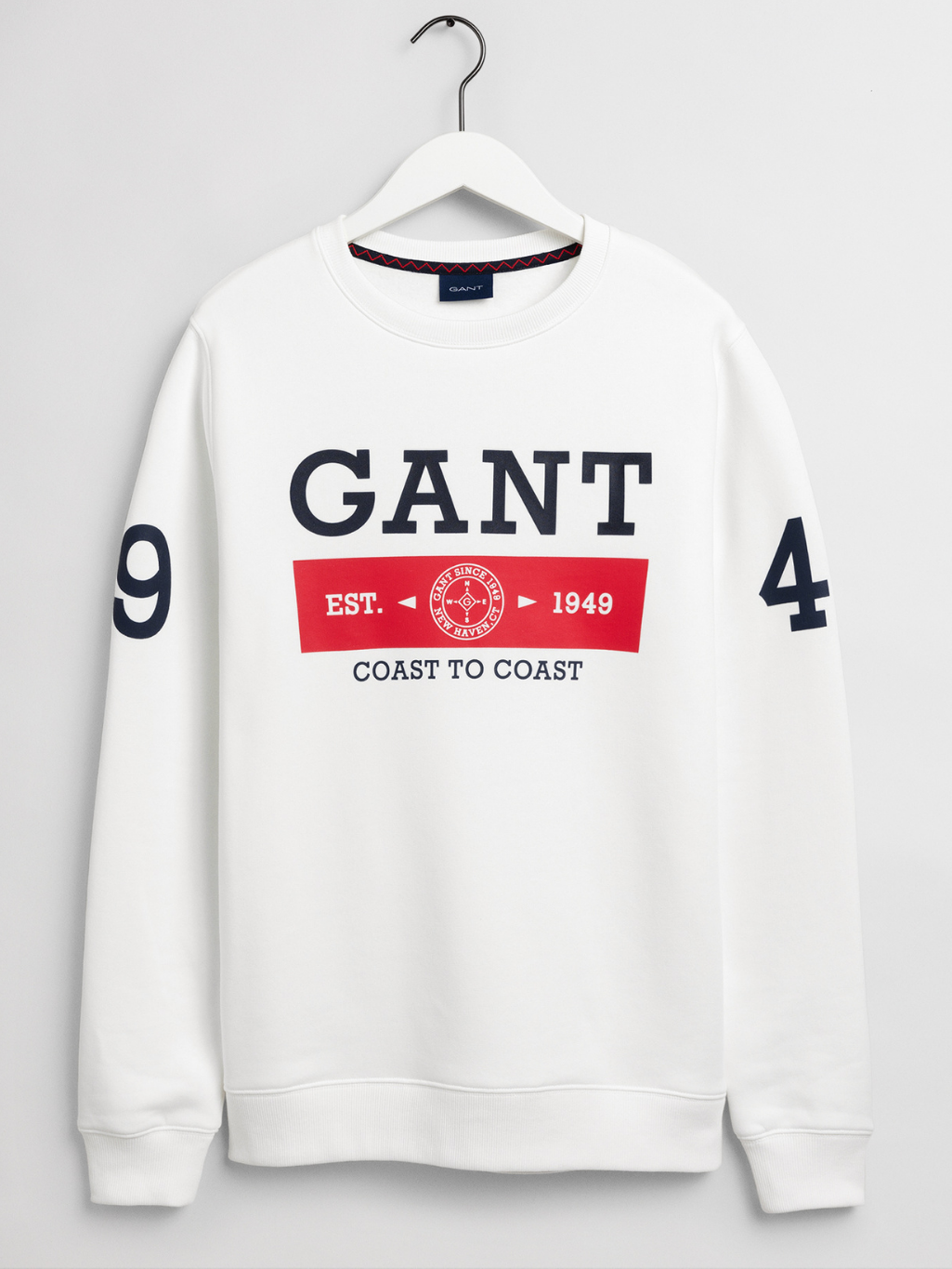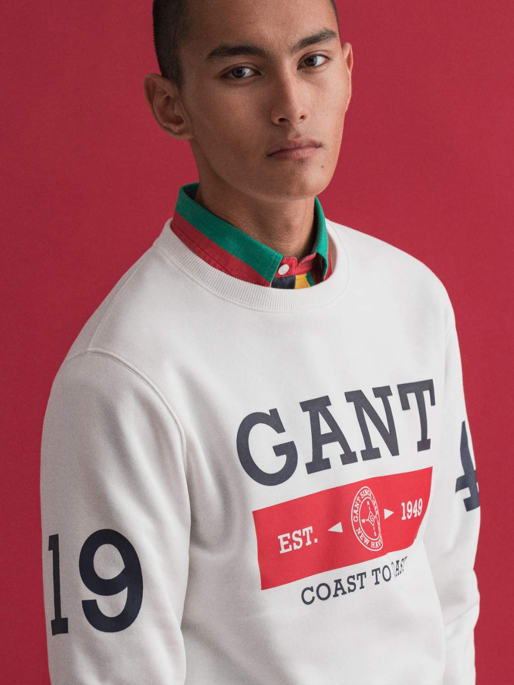 Crafted in a soft cotton blend, this regular fit sweatshirt features a nautical compass print with a logo at the chest, harkening back to our beginnings on the American East Coast. Pair with jeans or chinos for a preppy everyday look.