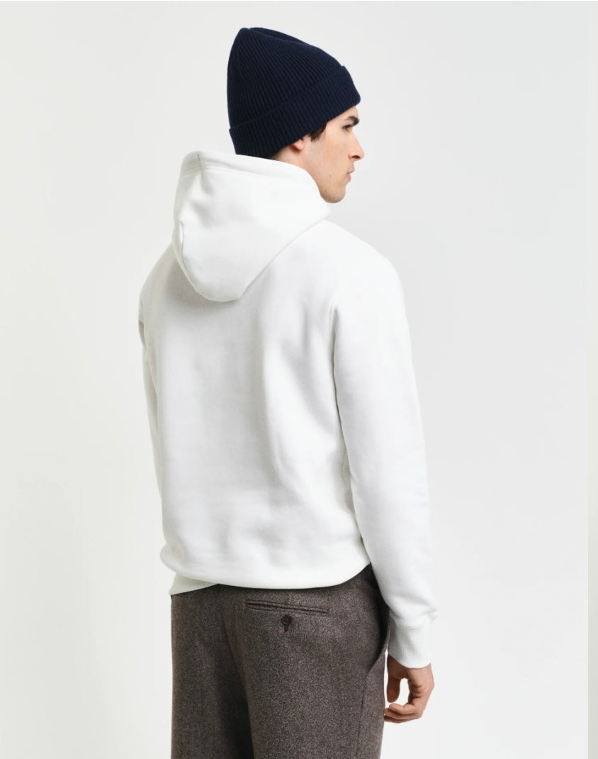 Crafted from a cotton-rich blend, this regular-fit hoodie is an elevated basic. Designed with a kangaroo pocket and ribbed detailing at the cuffs and hem, this hoodie is embossed with a raised GANT graphic at the chest. You can wear it with just about anything in your casual wardrobe