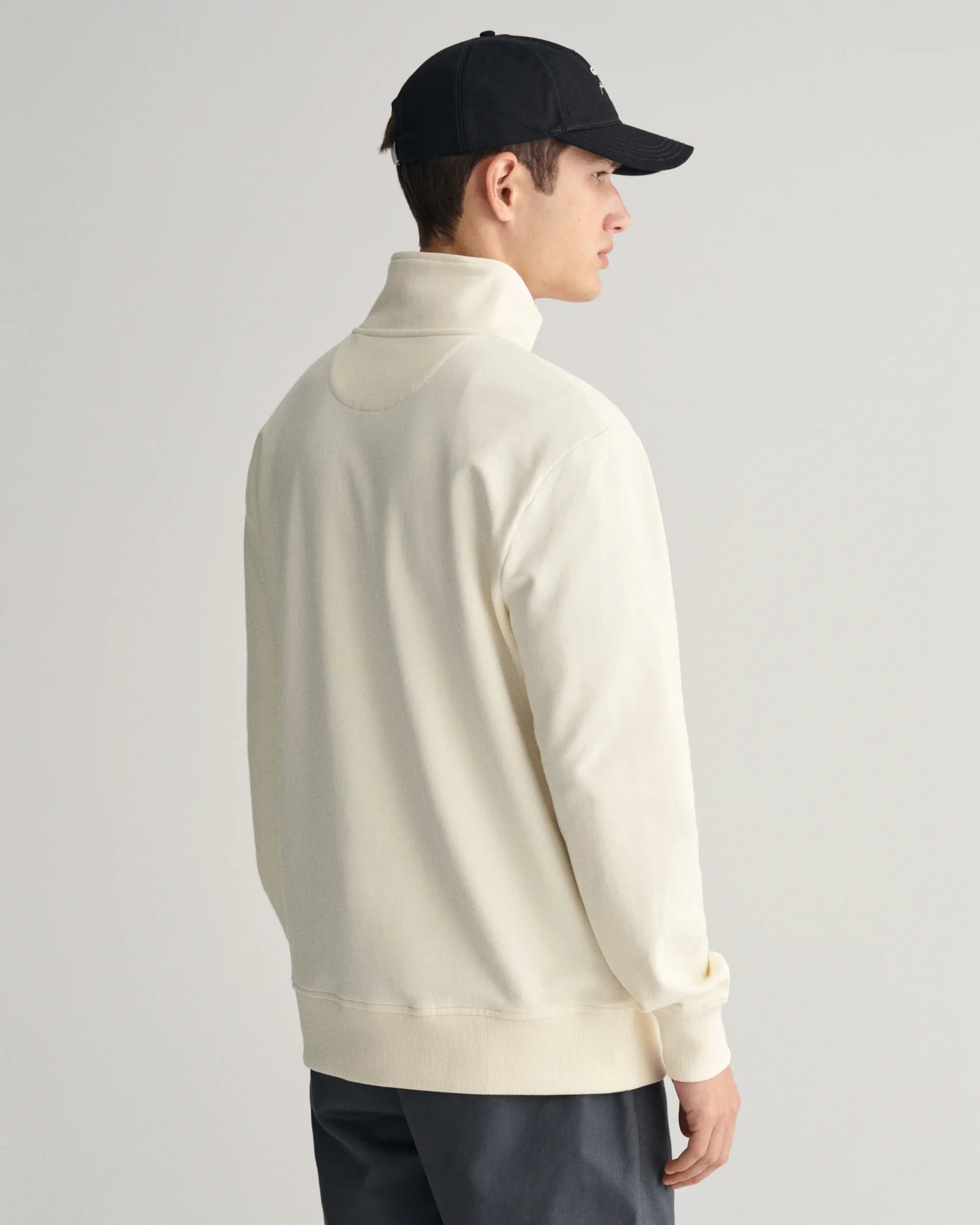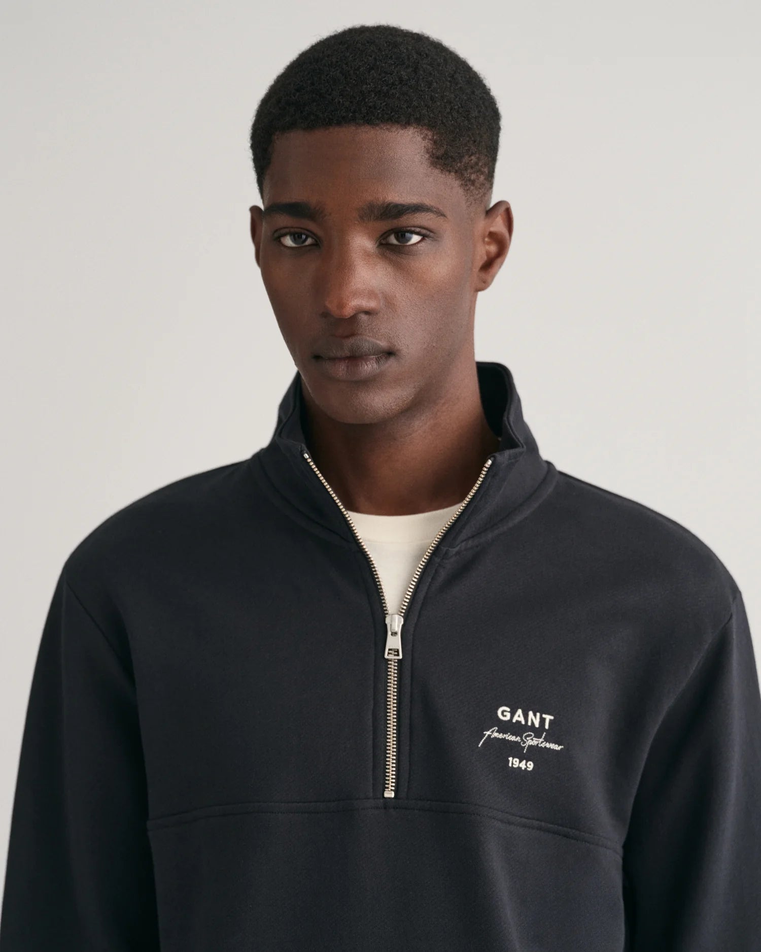 Made from 100% cotton, this jersey sweatshirt is cut for a regular fit and crafted with a half zip cutline for a sporty look. Featuring ribbed detailing at the hem and cuffs, the design is also fashioned with a kangaroo pocket, a silver-toned branded zip puller and a GANT script graphic embroidered on the chest.