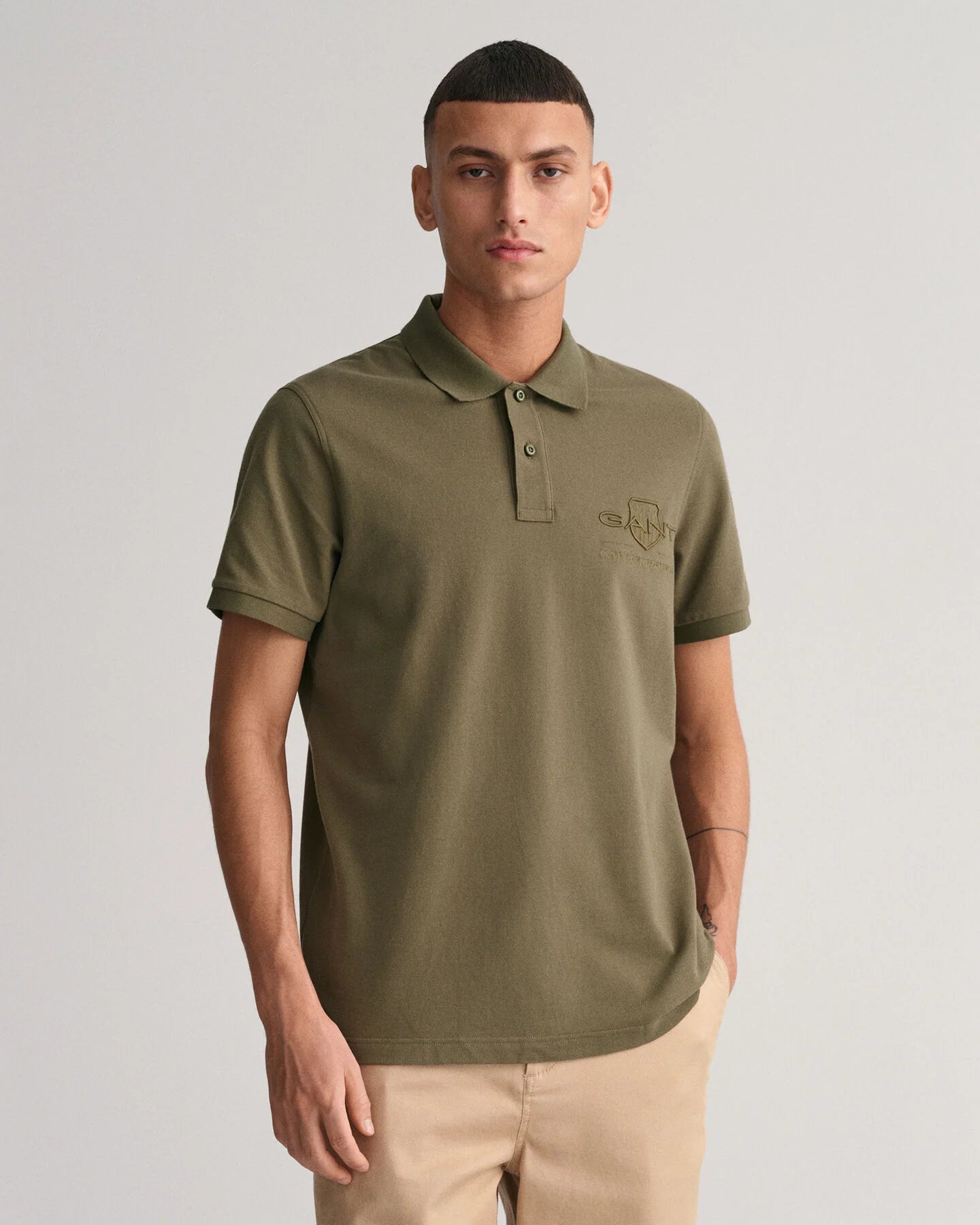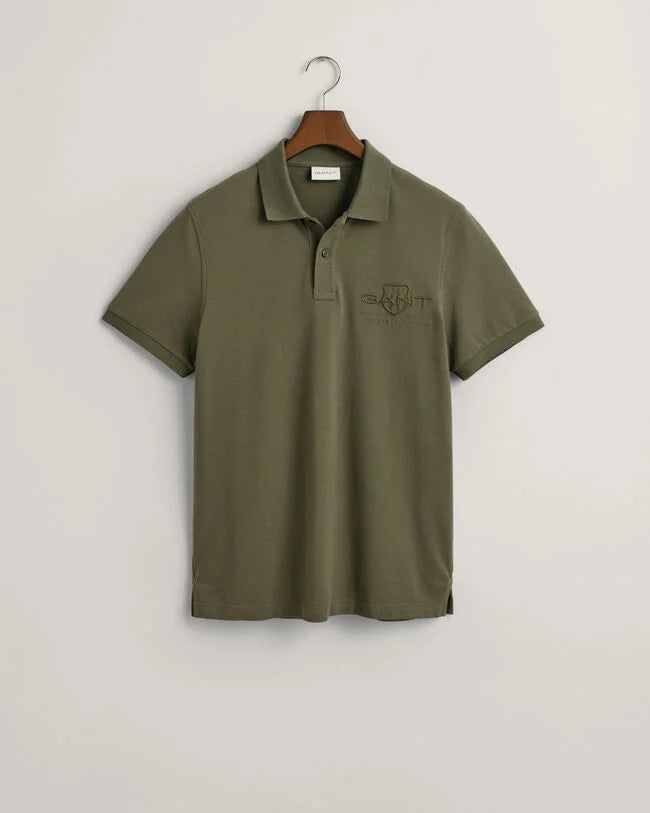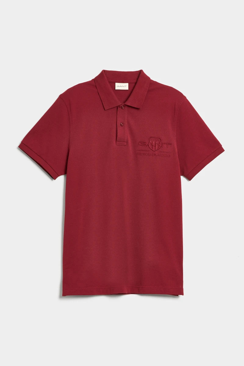 Embroidered in a shiny, tonal thread at the chest, this polo shirt sports Gant's signature shield logo with a vintage-inspired touch. Crafted from cotton piqué with a hint of stretch, this polo shirt has a regular fit.