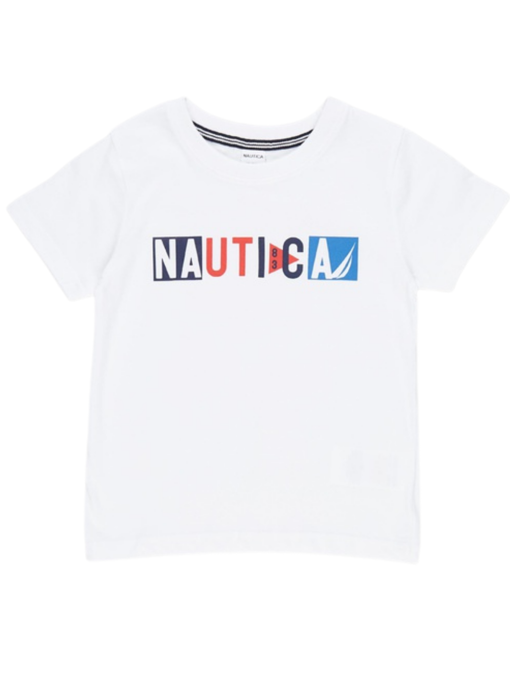 He's busy being a kid, so make his wardrobe decision easy with the Cliff Graphic Tee. This soft cotton-jersey tee calls back to our American sailing origins since 1983 featuring statement graphic logos sure to complete an outfit. Nautica graphic print, Ribbed crew neck, Short sleeves, Available in two colourways.