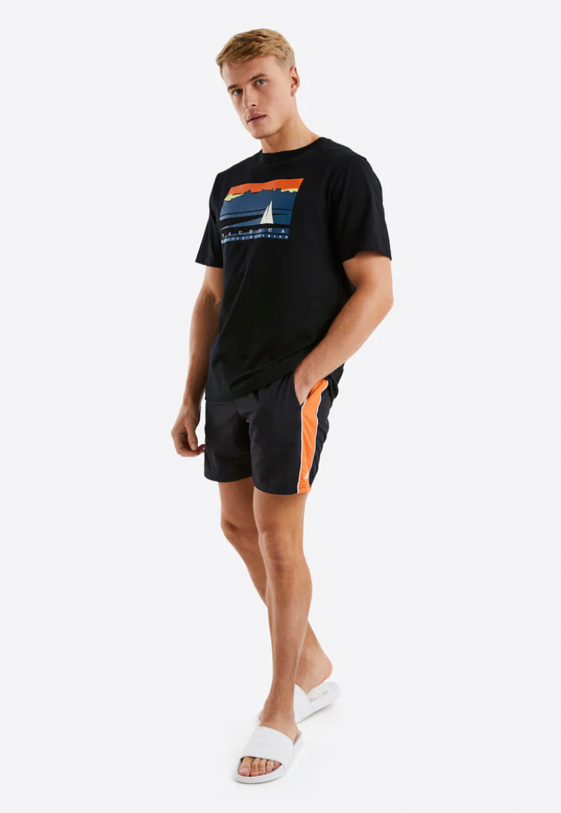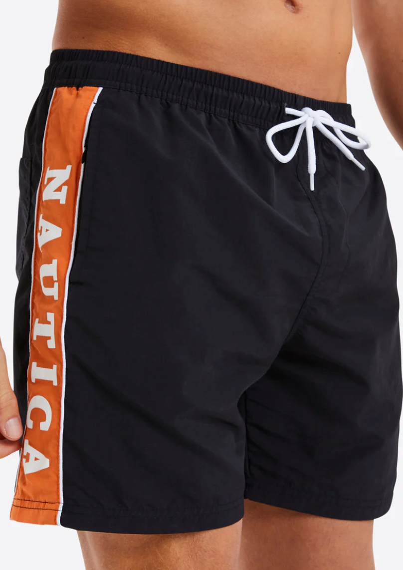 The Zalias Swim Short. Style yourself for your holidays in the regular fit 5” leg Zalias swim shorts. With an elasticated waistband and drawcords, these swim shorts and designed for the perfect fit. Complete with Nautica logo printed down the leg to show off your Nautica style.