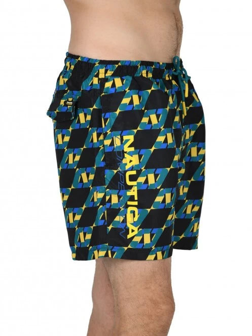 The Nautica Port Davy 4" Swim Short men's swimming trunks with a logo pattern are a cool novelty from the brand. The sporty design will brighten up your beach outfit in no time, while the extremely quick-drying material and the finely woven, elastic lining system guarantee maximum comfort during wakeboarding, surfing and sailing. The elastic material construction and the Regular Fit cut are responsible for your complete freedom of movement. The elastic waistband, which can be adjusted with a drawstring, keeps the bottom in place even during intense movement and prevents it from moving. You can always keep important items close at hand in the external pockets. The swimming trunks, made with a light and thin material structure, present a new generation of quick drying thanks to the applied water-repellent technology.