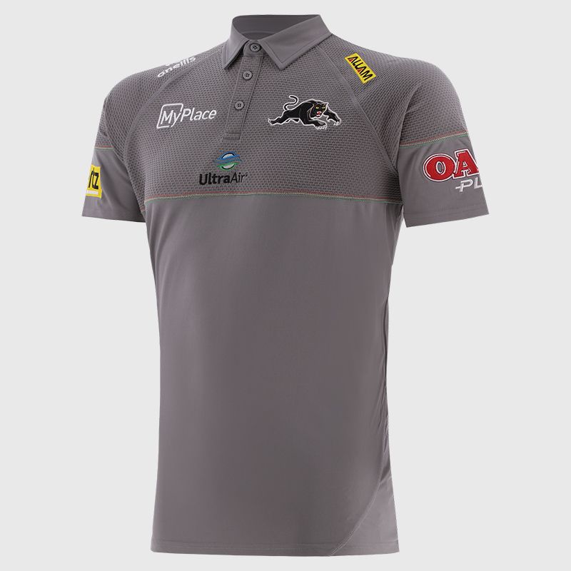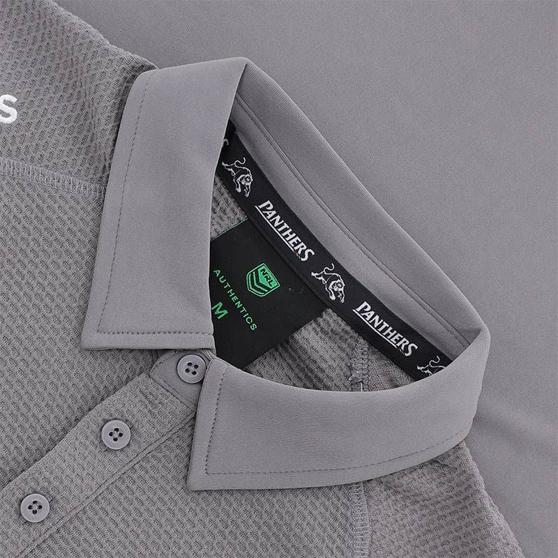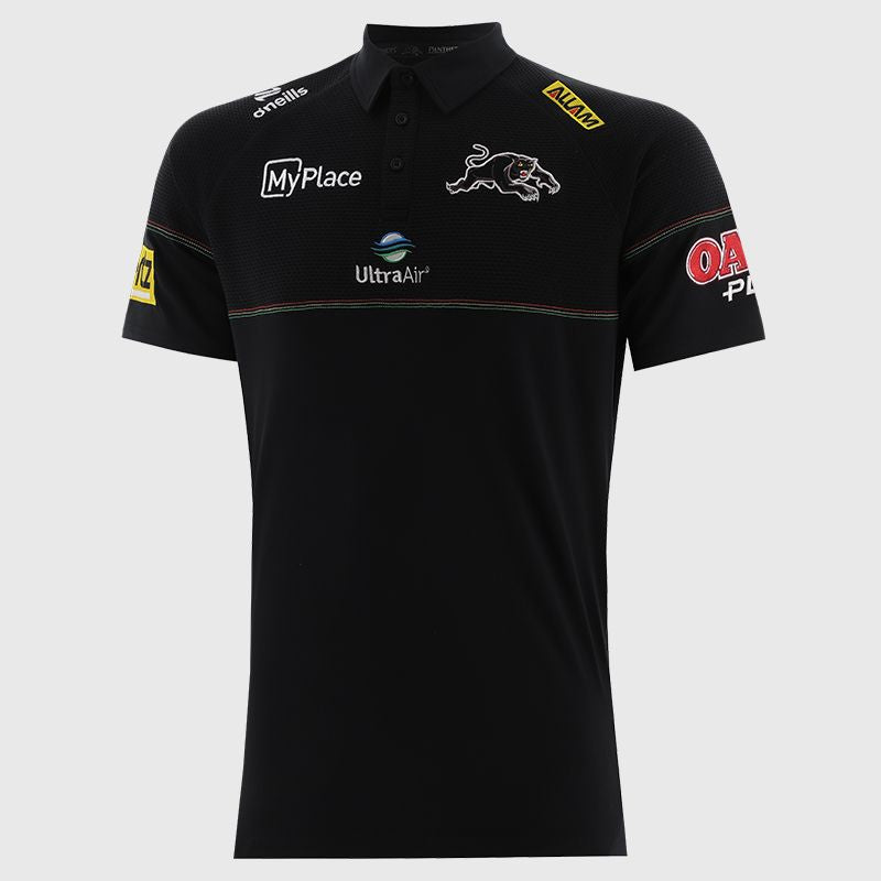 Panther supporters are ready to wear the Panthers tri-colour triple stitch-trimmed polo. Contrast fabrics and panels on this premium polo, enhance comfort, movement and breathability. A well knitted Penrith community of fabric and trims for all fans.