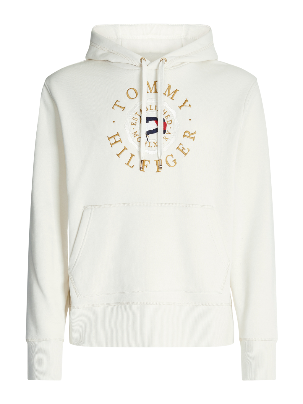 This soft organic cotton blend fleece hoody features stand-out branding on the chest that's surrounded by metallic embroidery.