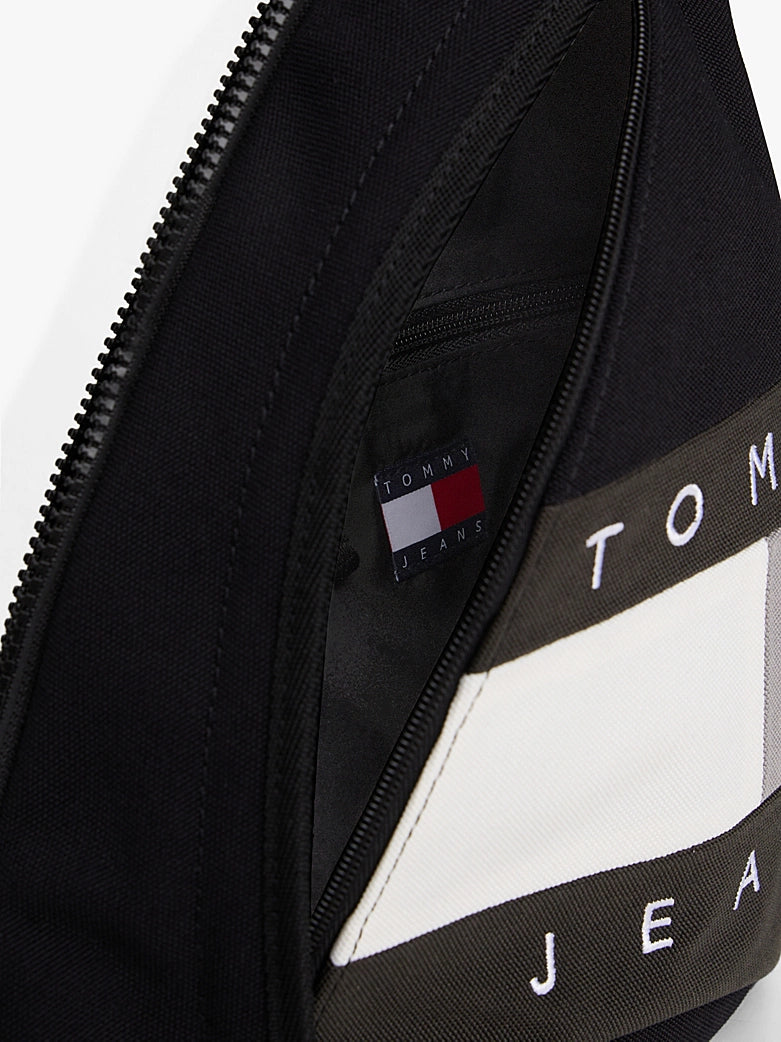 This archive-inspired sling bag is a practical, hands-free option for storing your essentials, finished with oversized colour-blocked branding.