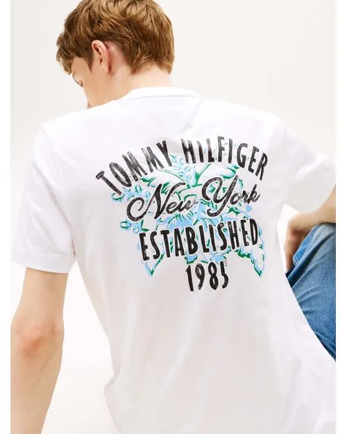 This knitted T-shirt, made of pure cotton, with print on the front and on the back.
