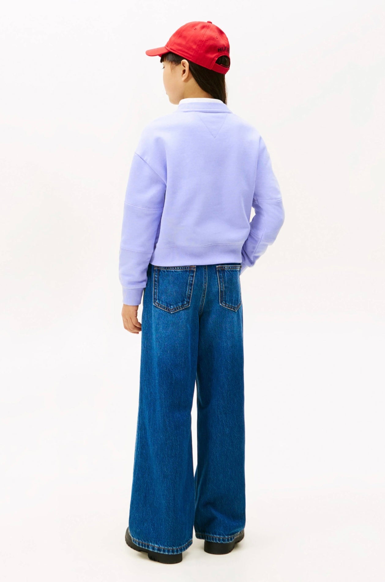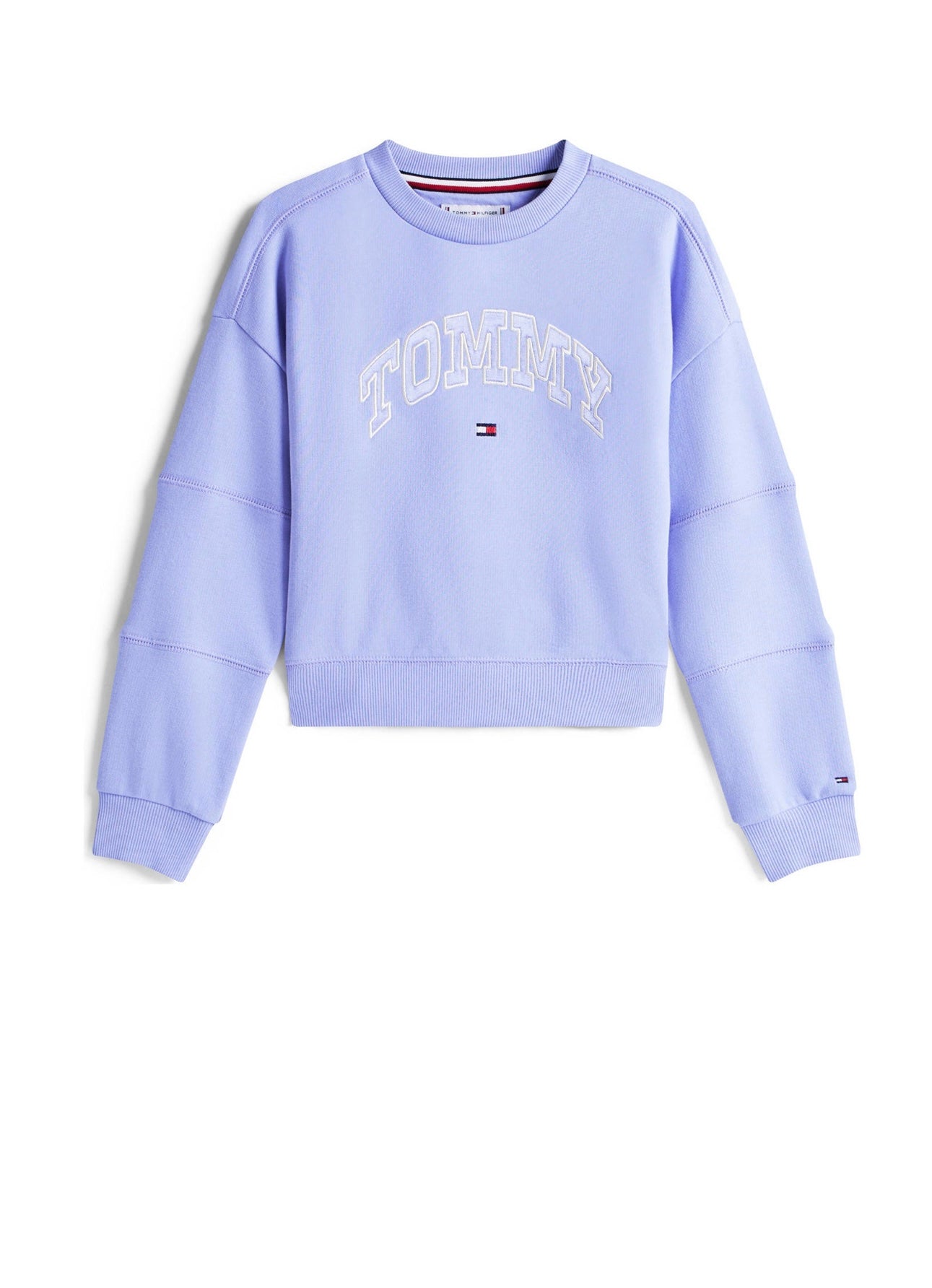 Smart Tommy Hilfiger sweatshirt in a deep navy shade with a prominent "TOMMY" embroidered on the front. The Sweatshirt has long sleeves and a round neckline. The design has a ribbed edge at the sleeves and hem, which gives a modern finish to the Tommy Hilfiger look
