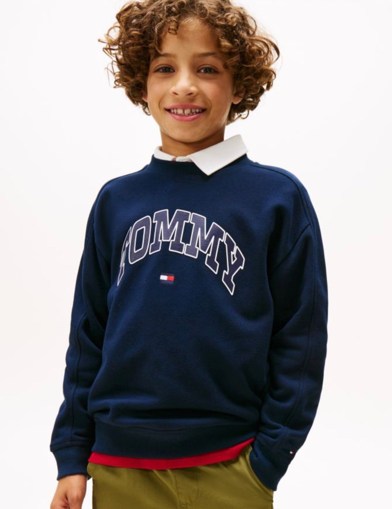 Pull on this crew-neck sweatshirt for the school run, as its embroidered flag and tactile printed logo give it true varsity vibes.