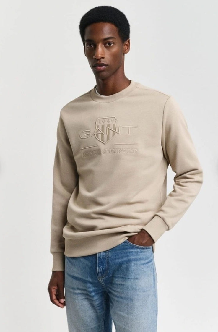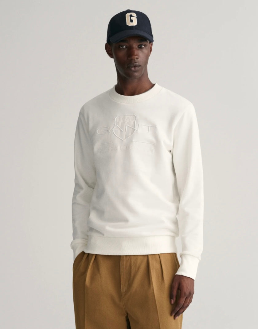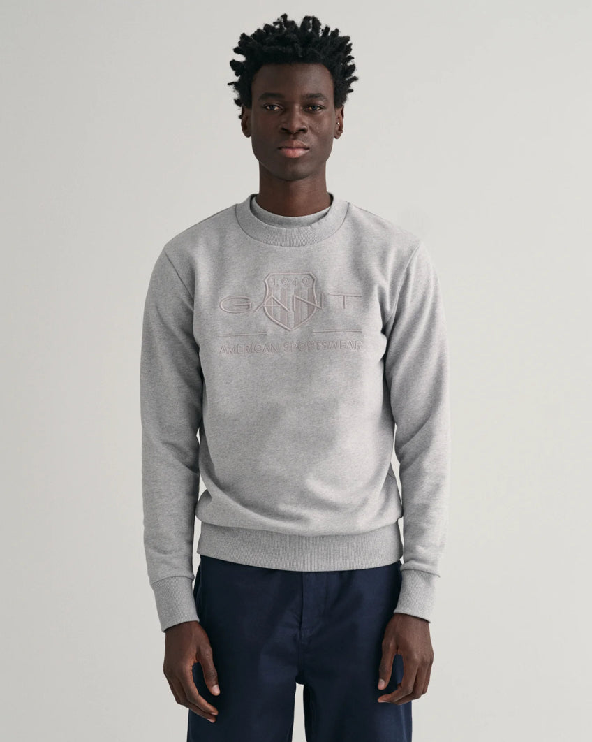 Crafted from soft cotton and cut in a regular fit, this crew neck sweatshirt features a raised and tonal GANT graphic embroidered at the chest. Equal parts classic and casual, this sweatshirt can be worn with jeans and tailored pants alike.